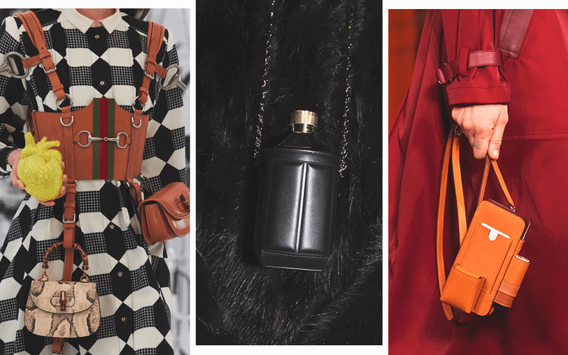 Более усовершенствованная версия микро-сумки вмещает в себя не только помаду. Необычные варианты придутся по вкусу тем, кто предпочитает оставлять руки свободными. Например, Gucci предложили носить сумки, прикрепленные к корсету; практичные Boss не забыли о поясных моделях; аксессуар от Hermès вместит в себя самое важное: телефон, банковскую карту, ключи и любимое бьюти-средство. Самые экстравагантные версии встречаются у Givenchy: бренд предлагает носить с собой любимый напиток, а аксессуар от Coach напоминает чехлы для телефонов из 2000-х, но на этот раз они больше похожи на сумки, в которые можно положить парочку необходимых мелочей.