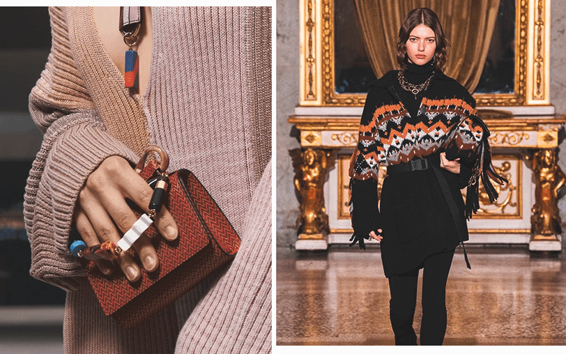 Прохладной осенью радовать нас будут сумки, напоминающие изделия ручной работы: трикотажные, вязаные, плетеные. В соответствии с этими стилями формируются узоры и текстура аксессуаров: все чаще дизайнеры создают фасоны с этническими мотивами и яркими узорами. К этой тематике обратились Chloe, J.W. Anderson, Missoni, Sacai. С таким аксессуаром можно сочетать и хэндмейд-тренды в одежде: кроше, трикотажная вязка и разнообразные вышивки.