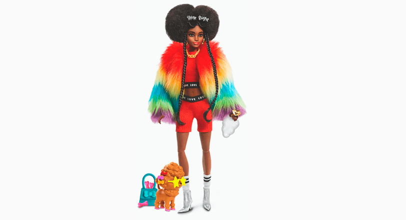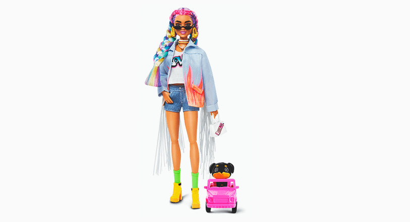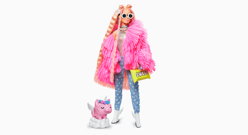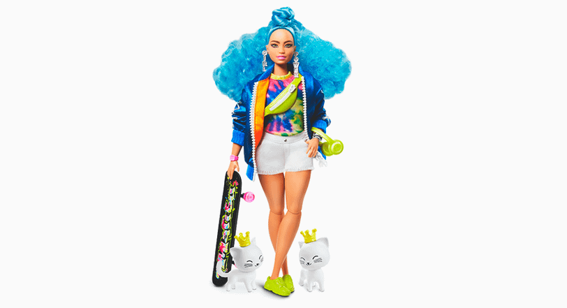 Всего в новой линейке Extra появились пять кукол с уникальным стилем и индивидуальностью, у каждой из них даже есть свой питомец. Так, можно увидеть сказочную Барби с панк-стилистикой, темнокожую куклу в шубе из радужного меха, королеву скейтборда в рубашке с принтом тай-дай, модная девушка в куртке с бахромой и блондинка в очках из бусин. Также у всех них разный тип фигуры и рост.