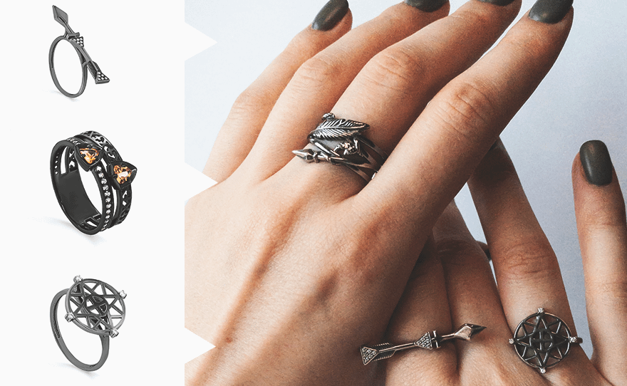Создавая эту ювелирную коллекцию, Kabarovsky вдохновлялись образами красивых, бесстрашных и доблестных амазонок, каких мы наблюдали в сериале «Удивительные странствия Геракла». Дерзкие серебряные кольца, серьги и колье со стрелами, черепами и октаграммой наверняка вызовут ностальгические воспоминания и у тебя. Такие украшения символизируют возрождение, путеводность, славу и свет — идеальный выбор для тех, кто хочет добавить в свой образ немного смелости.