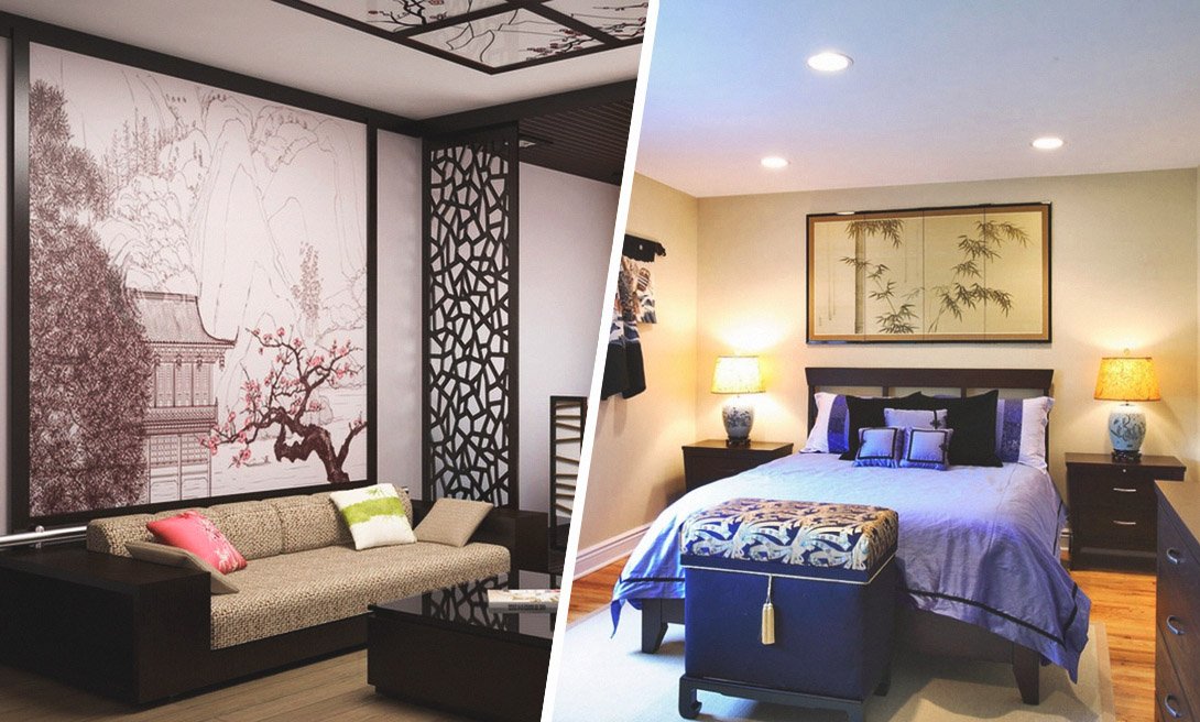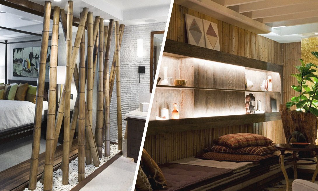 В основе восточного интерьера – природа и созерцательность. В оформлении помещения обязательно должны быть использованы натуральные материалы или искусственные с имитацией дерева, камня или бамбука.