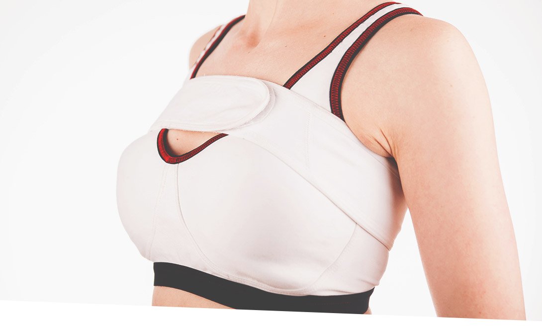 Пациент в течение месяца пользуется специальным компрессионным бельем, которое поддерживает форму груди и предотвращает смещение имплантатов.
