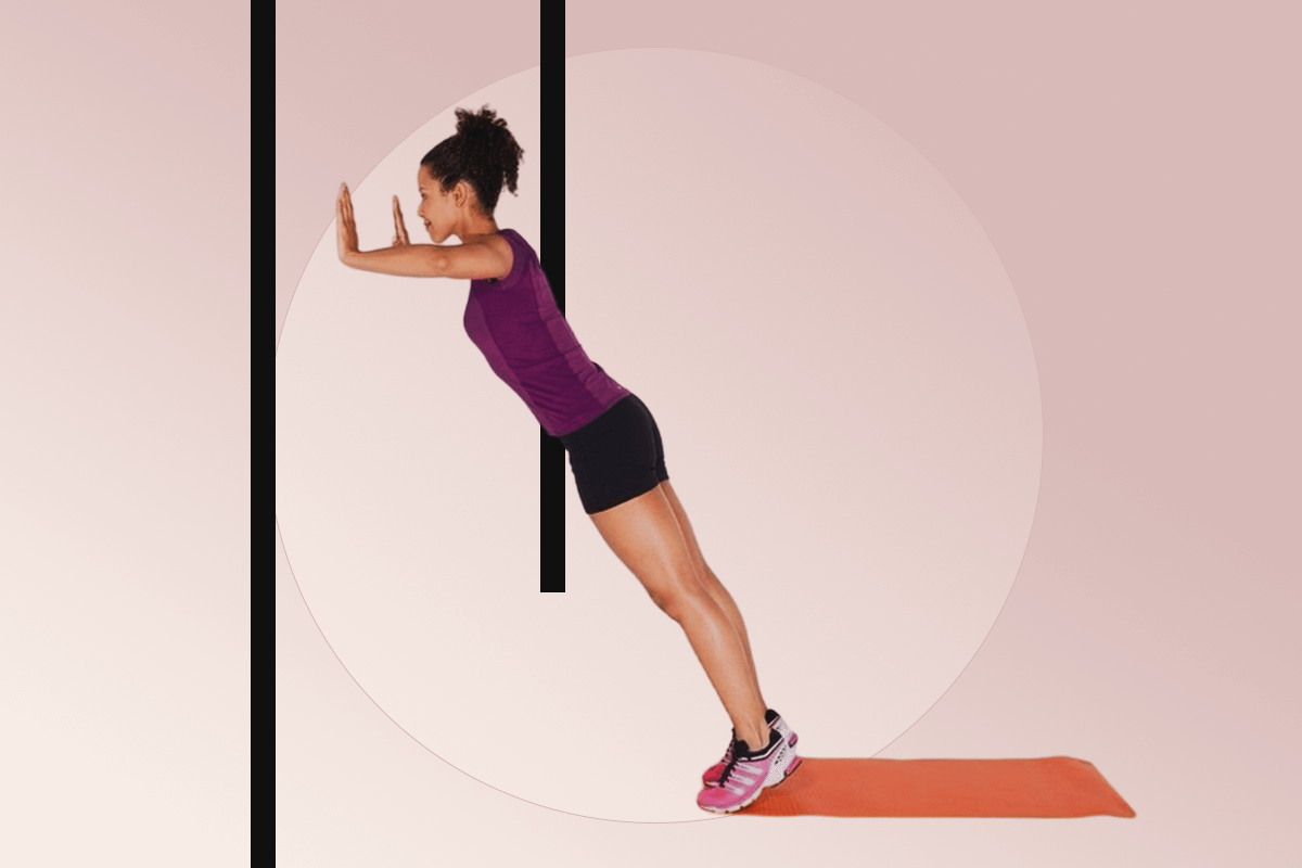 - ладонями упрись в стену: наклони тело, но спину держи ровной;