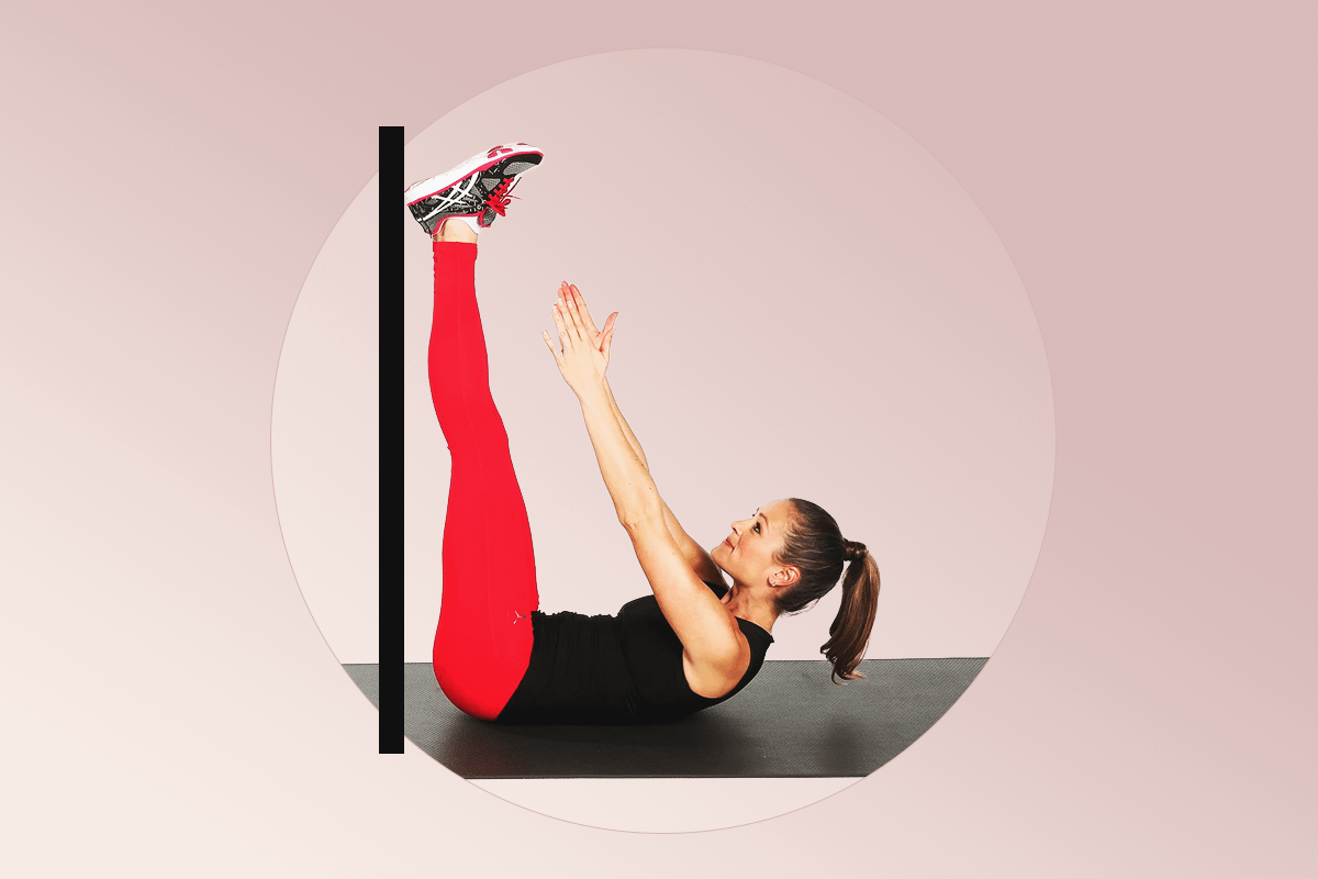 - подними нижнюю часть корпуса и прижми стопы к стене;