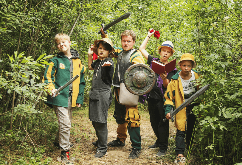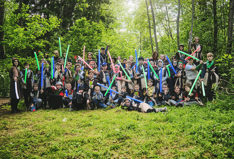 В тематическом лагере в основе каждой смены лежит сюжетно-ролевая игра. Такие игры — традиционное детское увлечение, они развивают воображение и учат общаться. Все мы играли во дворе в персонажей любимых мультфильмов, спорили, кто будет главным героем, и использовали палку как универсальную замену любому оружию. Тематические летние лагеря помогают воплотить мечту каждого ребенка — стать главным героем любимой истории в детально проработанном мире, а не во дворе или детской площадке.