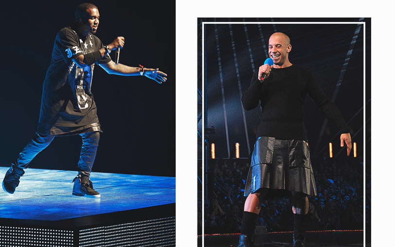 В 2011 году Канье Уэст во время тура Watch the Throne появился в кожаной юбке Givenchy из мужской коллекции весна-лето 2012. Таким жестом он напомнил о том, что юбка — одежда, которая сейчас прочно ассоциируется с женщинами, в действительности имеет древние корни — ассоциирующиеся с мужественностью. В эти годы все чаще модельер Марк Джейкобс тоже не пренебрегает гендерно-нейтральными элементами: дизайнер создал свою версию килта, соединив классическую юбку с шортами. На волне новой жизни килтов их можно было увидеть на Джерарде Батлере, Юэне МакГрегоре, Шоне Коннери и даже Вин Дизеле. Кто-то старался таким образом почтить свои корни, другие же призывать общественность пересмотреть взгляд на вещи, которые не должны быть мерилом личности человека.