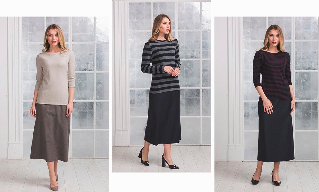 Лаконичные, элегантные платья нейтральных расцветок — основа базового делового гардероба. Выбирай теплые приталенные платья-миди или чуть выше колена, с удлиненными рукавами, избегая глубоких вырезов и броских орнаментов. Предпочтение стоит отдать натуральным тканям: чистой шерсти или в сочетании с хлопком и вискозой. Они сохраняют тепло в непогоду и отталкивают влагу, устойчивы к загрязнениям, практически не мнутся и не требуют глажки.