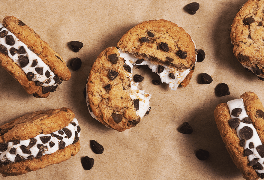 У печенья с начинкой CHIKАLAB много разных вкусов. Например, тройной шоколад, арахис, клубника или банан. Ты можешь экспериментировать и делать ассорти из разных сэндвич-десертов.