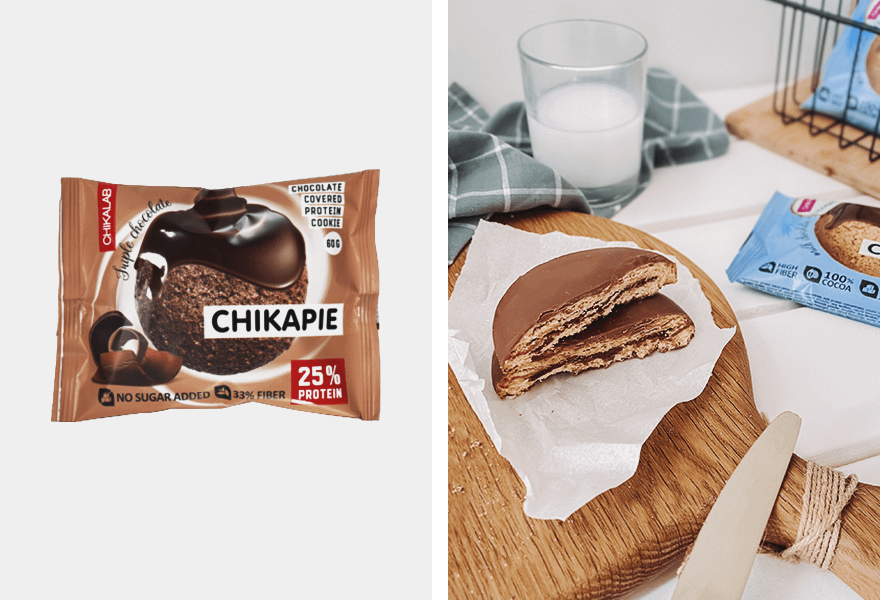 Здесь всё очень просто: растопи сливочное масло, смешай с яичными белками и сахарозаменителем. Взбей массу до кремовой текстуры и выложи между печеньями с начинкой CHIKALAB. Всё, твой сладкий сэндвич готов!