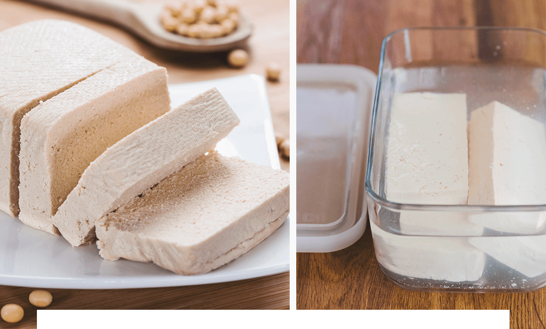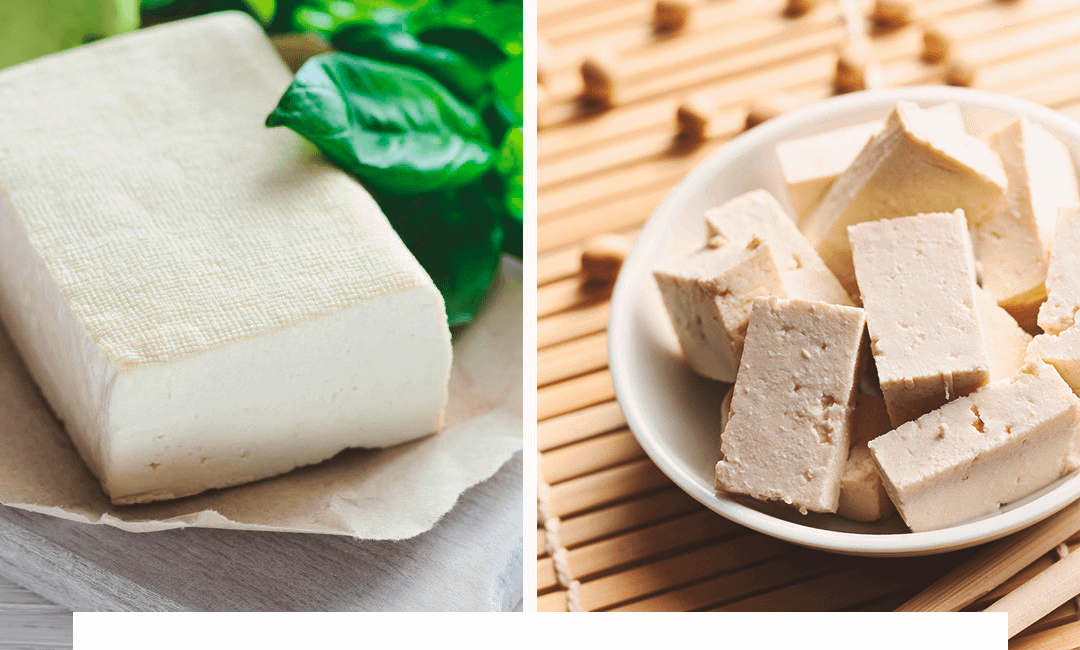 Проще всего различить разные виды соевого творога по консистенции. Твердый тофу довольно плотный. Он хорошо подходит для жарки, копчения, запекания. Этот вид творога делится на «западный тофу» — более плотный и с меньшим содержанием воды, и «азиатский тофу» — не такой твердый и в нем больше влаги.