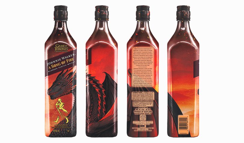 Напиток крепостью 40,8% под названием Johnnie Walker A Song of Fire («Джонни Уокер — Песнь Огня») с нотками дыма из торфяных солодов винокурни Кал Иле и едва заметными пряностями — олицетворяет семью Таргариенов. В дизайне этого виски использованы оттенки красного, который ассоциируется с покровителями рода Таргариенов — драконами.
