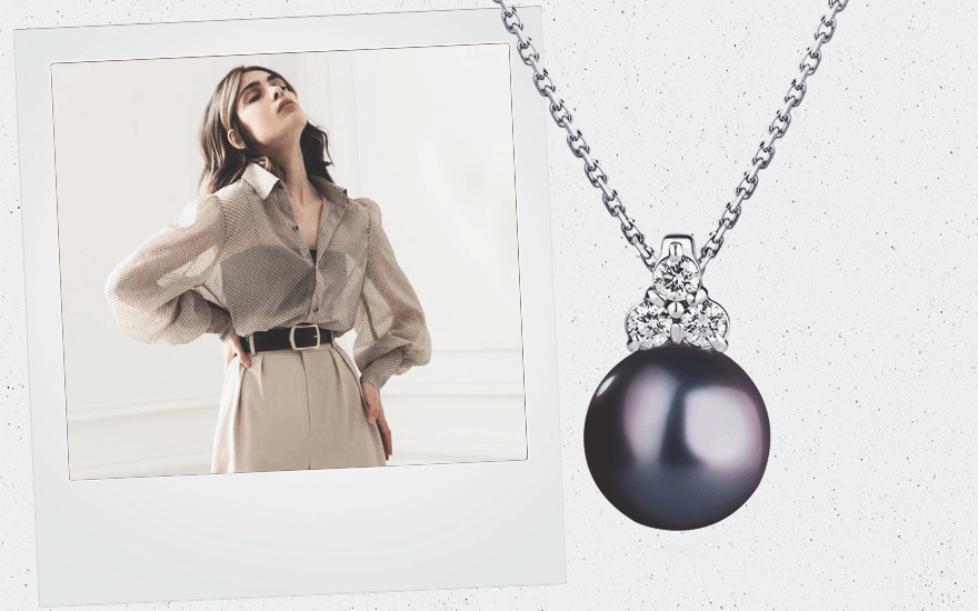 Эта изящная подвеска с черным жемчугом и бриллиантами — отдельное визуальное удовольствие. Приятно видеть, что этот нежный и изящный камень переживает новый виток популярности и все чаще мелькает в ювелирных коллекциях российских брендов. Жемчужные украшения больше не воспринимаются как атрибут винтажа, поэтому дизайнеры советуют носить их с чем угодно, а не только с вечерними платьями и строгими деловыми костюмами.