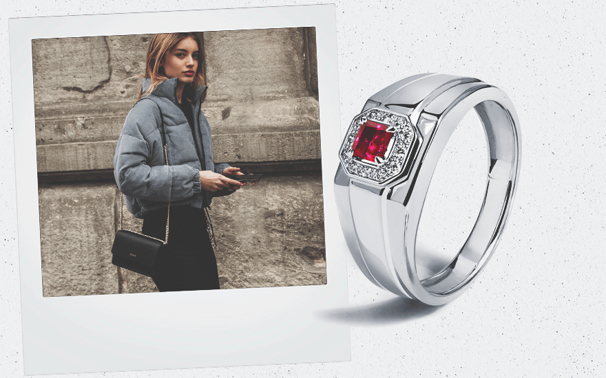 Массивное кольцо с рубином и бриллиантами уверенно возьмет на себя доминантную роль, мгновенно освежив даже самый скромный и тривиальный образ. Если раньше такие аксессуары надевали только по особым случаям, то сегодня их используют повсеместно, сочетая не только с роскошными вечерними платьями, но и с простыми футболками, джинсами и кроссовками. С таким ярким, но в тоже время элегантным аксессуаром, ты точно будешь выделяться из толпы.