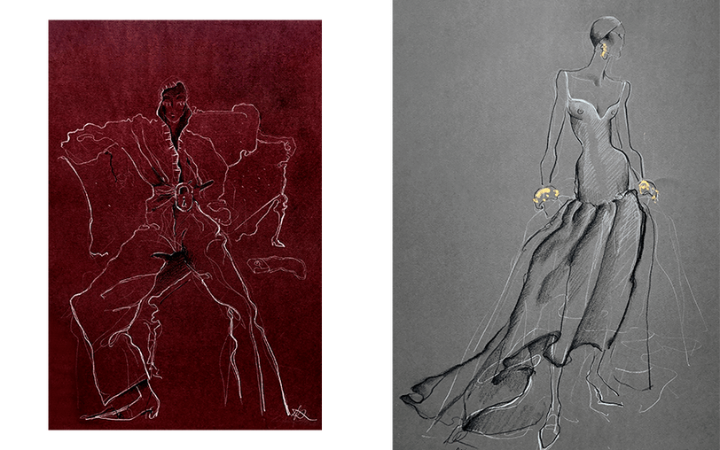 Пока что коллекция еще не воплощена в жизнь, однако после виртуальной Недели моды эскизы отправятся в ателье в Париже и будут отшиваться только по сделанному заранее заказу.