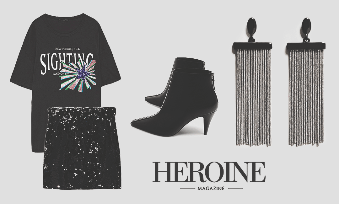 А теперь давай серьезно. От пайеток ни в коем случае не стоит отказываться, особенно для новогоднего аутфита, но вот носить их стоит в повседневном образе. Мое любимое сочетание – юбка с пайетками и простая футболка с принтом. Праздничный блеск и нотка рокерства, а главное, не будешь выглядеть, как гирлянда. Так что если в твоем шкафу завалялась блескучая вещица или же ты, поддавшись хайпу, уже успела купить себе костюм Ариэль для Хеллоуина, то просто добавь к этому наряду что-нибудь старое, растянутое и любимое.
