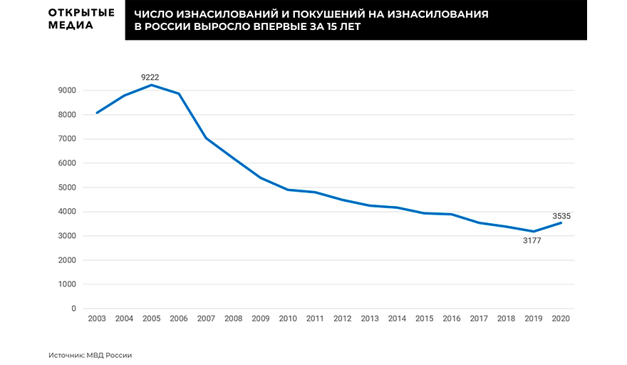 В своем отчете МВД не говорят о причинах увеличения изнасилований и покушений на изнасилования. Однако правозащитники связывают растущие цифры с пандемией коронавируса. Соосновательница проекта для помощи женщинам «Ты не одна» Алена Попова отметила, что один из первых звонков на горячую линию касался именно этого вопроса. Обратившаяся женщина рассказала о своем супруге, который ранее бил ее, а во время самоизоляции перешел к сексуальному насилию.