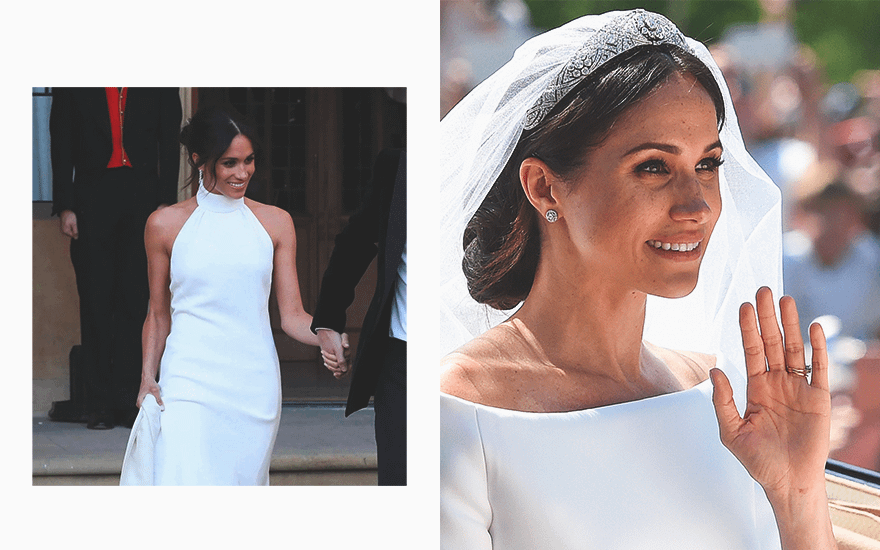 Пучок с выбивающимися прядями можно считать фирменной прической герцогини Сассекской. Она выбирает ее для повседневных выходов, рабочих встреч и визитов. Даже на свою свадьбу в мае 2018 года Меган отдала предпочтение пучку, причем в двух вариантах: классический низкий пучок на церемонии бракосочетания и более объемный и высокий пучок с локонами, обрамляющими лицо, на последующем праздничном приеме по случаю свадьбы.