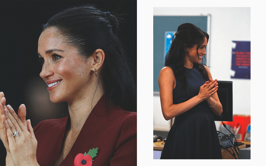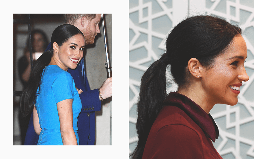 С обычным хвостом Меган Маркл увидишь редко, но все же иногда она делает такую прическу, когда хочет выглядеть менее формально, но все еще сдержанно. Меган носит как высокий, так и низкий хвост – оба варианта ей очень идут.