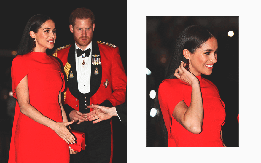 Хотя чаще всего Меган Маркл носит распущенные волосы слегка завитыми, иногда она оставляет их прямыми, в частности так она выглядела во время выступления на виртуальном саммите Girl Up. В последние месяцы перед тем, как сложить с себя полномочия членов королевской семьи, Меган и Гарри появились на приеме по случаю Mountbatten Festival of Music в невероятно шикарных образах: на принце была парадная форма генерал-капитана Королевских морских пехотинцев, а Меган надела облегающее красное платье в пол с кейпом от бренда Safiyaa. Волосы Маркл были идеально выпрямленными, гладкими, разделенными аккуратным пробором посередине и убранными за плечи. Такая прическа идеально подходит к ярким роскошным нарядам, выглядит одновременно просто и элегантно.