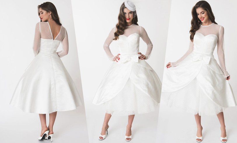 Оригинальное платье в ретро-стиле было представлено в 1962 году и дополнено широкой шляпой. Двубортный верх, черно-белый вырез, большие пуговицы и карманы — идеальный выбор для выхода в свет.