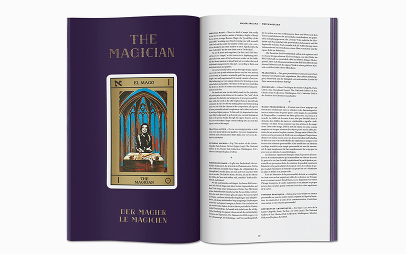 Коллекция карт сопровождается буклетом, написанным немецким тарологом Иоганном Фибигом, который представил руководство, объясняющее значение каждой карты, а также описал работу Сальвадора Дали над коллекцией.