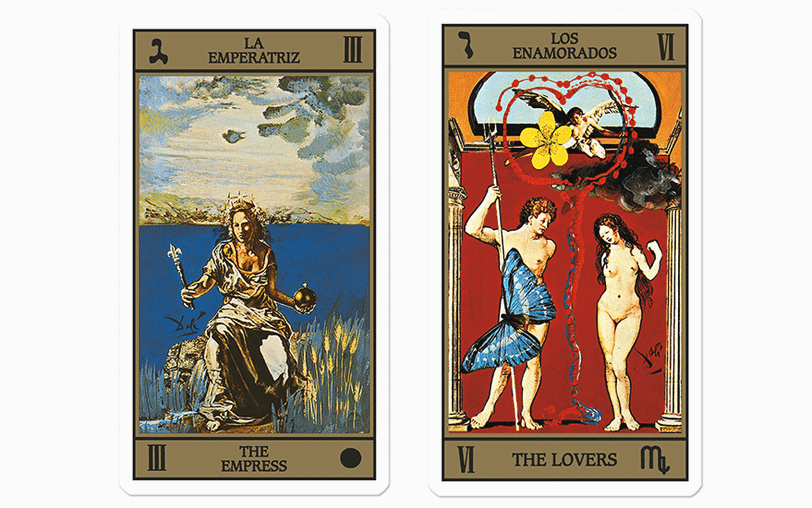 На каждой из 78 карт изображены рисунки в индивидуальном и неповторимом стиле Дали, который смог сочетать узнаваемых исторических персонажей со своим почерком оккультиста. Например, лицо Шона Коннери изображено на карте «Император», а жена Дали, Гала, — на карте «Императрица».