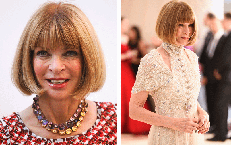 Образ Винтур стал визитной карточкой — даже прямой ассоциацией с редактором. Согласись, что, вспоминая Анну, ты непременно отметишь ее прическу — которой икона мира моды верна почти всю жизнь — и строгий стиль.