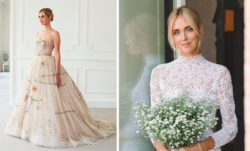 На церемонии было сразу два свадебных платья, оба сшитые креативным директором модного дома Dior Мария Грация Кюри. Только на одно платье у сотрудниц дома ушло 1600 часов работы. Первое — с кружевом и пышной фатиновой юбкой было предназначено для церемонии, второе — цвета слоновой кости и расписанное цитатами из песни Favorisca i Sentimenti, которую Федерико пел ей, когда делал предложение.