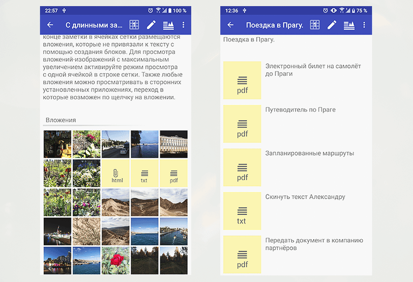 Система иерархии позволяет сортировать заметки по важности, а удобный поиск — легко находить необходимое по названию, ключевым словам или частям фраз. Удобно, что набирать текст можно как с помощью клавиатуры, так и голосовым вводом. Все заметки полностью синхронизируются с другими устройствами через учетную запись в Dropbox или Google Drive, так что ты или другие пользователи смогут получить к ним доступ откуда угодно. Но даже это не самое интересное.