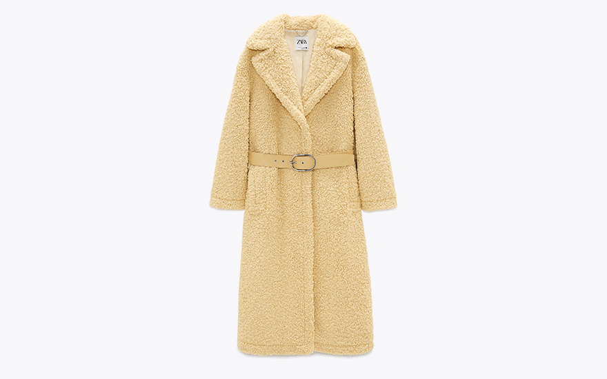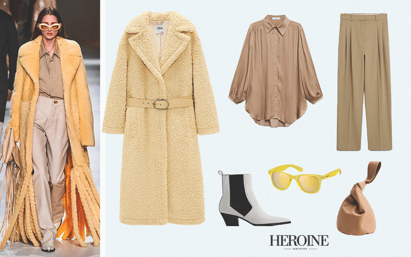 Основой для легендарной шубы послужила шерпа — материал, состоящий из полиэстера, но при этом напоминающий овечий мех. Его самое большое преимущество — высокая степень теплоизоляции. Однако для того, чтобы собрать наряд как с подиума, можно обратиться и к более доступной одежде. Например, выбрать шубу из Zara — она так же выполнена из искусственной овчины.