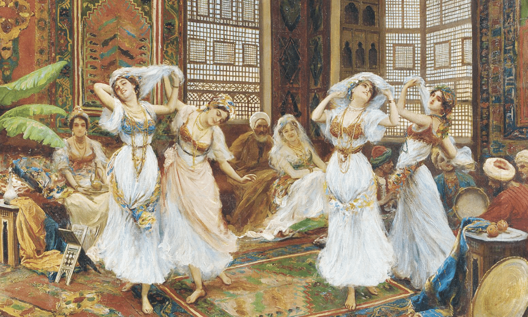 Дословный перевод слова «альмея» означает «искусная или ученая женщина», которая в арабской культуре являлась искусницей высокого ранга. Альмеи умели танцевать, хорошо пели и приглашались в гаремы, чтобы развлекать женщин, а также богатых и знатных господ в арабском Египте. Сами альмеи в обществе имели довольно достойный социальный статус. Их приглашали на разные мероприятия, почитали на церемониях и восхищались их умениями. Альмеи обладали богатыми знаниями мифологии, героических сказаний, древней поэзии и традиционного пения, которые они передавали из поколения в поколения. Чтобы стать альмеей, девушка должна была обладать красивым голосом, хорошо владеть литературным языком, уметь играть на разных музыкальных инструментах, а также хорошо импровизировать.