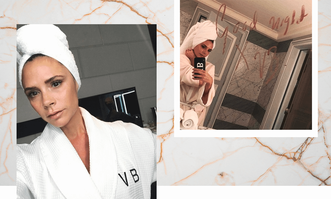 Конец дня Виктория посвящает заботе о себе и хорошему уходу за кожей – и в этом она похожа на многих из нас. Каким бы сложным ни был твой график, всегда оставляй время для того, чтобы привести себя в порядок и настроиться на завтрашний день.